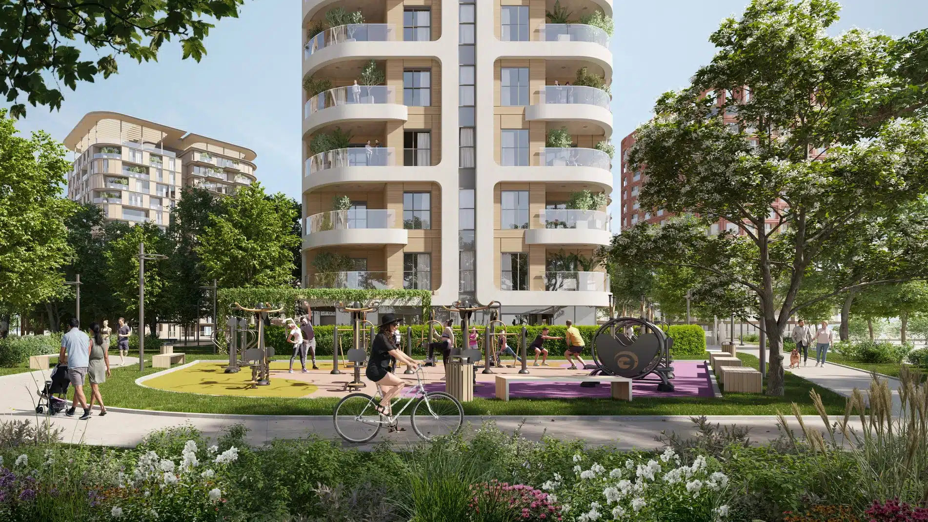 • القسم الثاني: يمتد على مساحة 40,000 متر مربع، مكون من 8 مبانٍ و900 شقة، تاريخ التسليم: 2026.