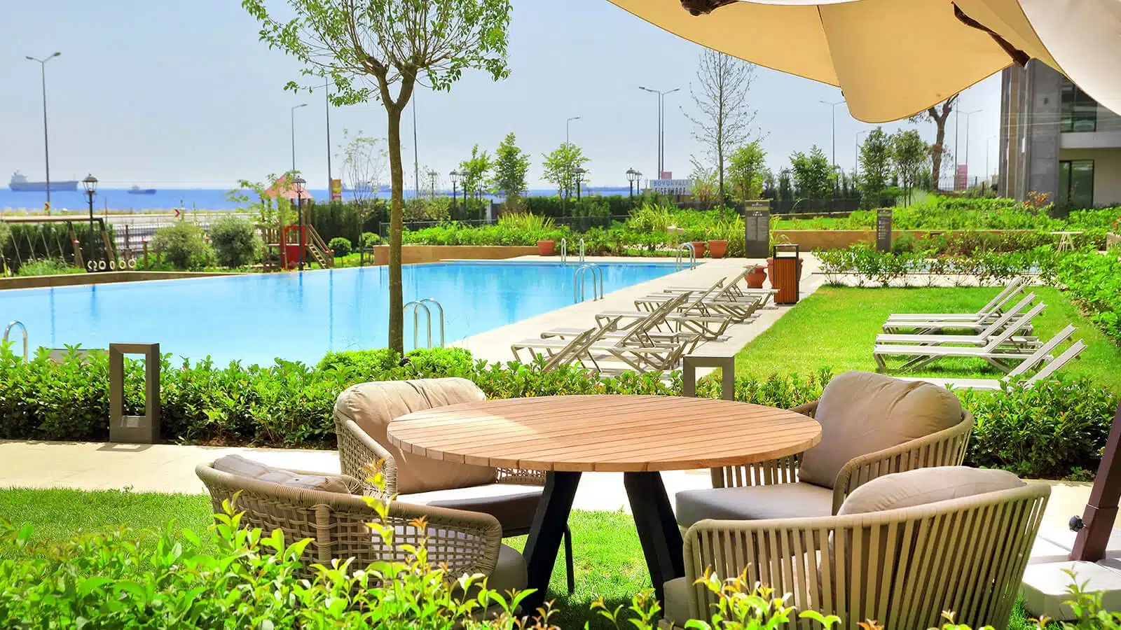 5. Unique green areas, water features, and children’s play zones.